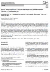 Pullini A, Martins Caetano G, Clatiaux H, Vergeron L, Pitts P, Katz G, Impact of Real-World Data on Market Authorization, Reimbursement Decision & Price Negotiation, Therapeutic Innovation & Regulatory Science. 2021; 55(1) 228-238.